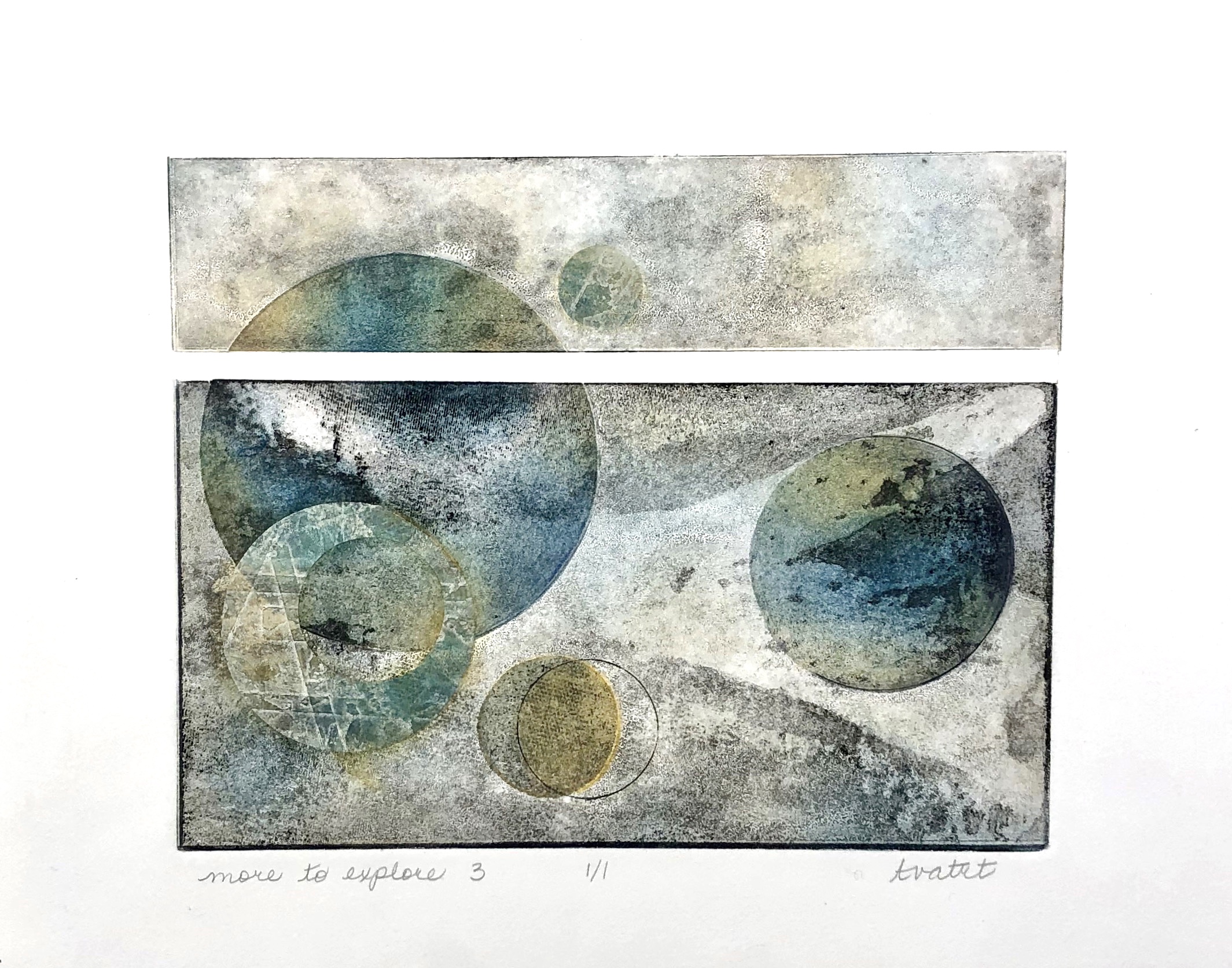 more to explore 3, Terry Vatrt, intaglio, chine collé, ink, coloured pencil